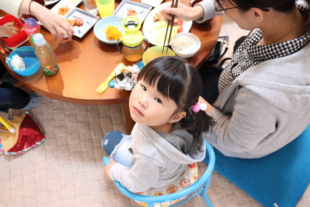 初めての場所なのに、お行儀良くごはんを食べるおりこうさん(^^