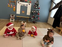 サンタとトナカイが良い感じでペアになりました♪今日のさんさん助産院。 はじめましてのむぎちゃんとママ リピーターのたっくんとママ が仲良くお泊り中。からだが大きめのたっくんと小さめのむぎちゃんで、良い感じのバランスです。