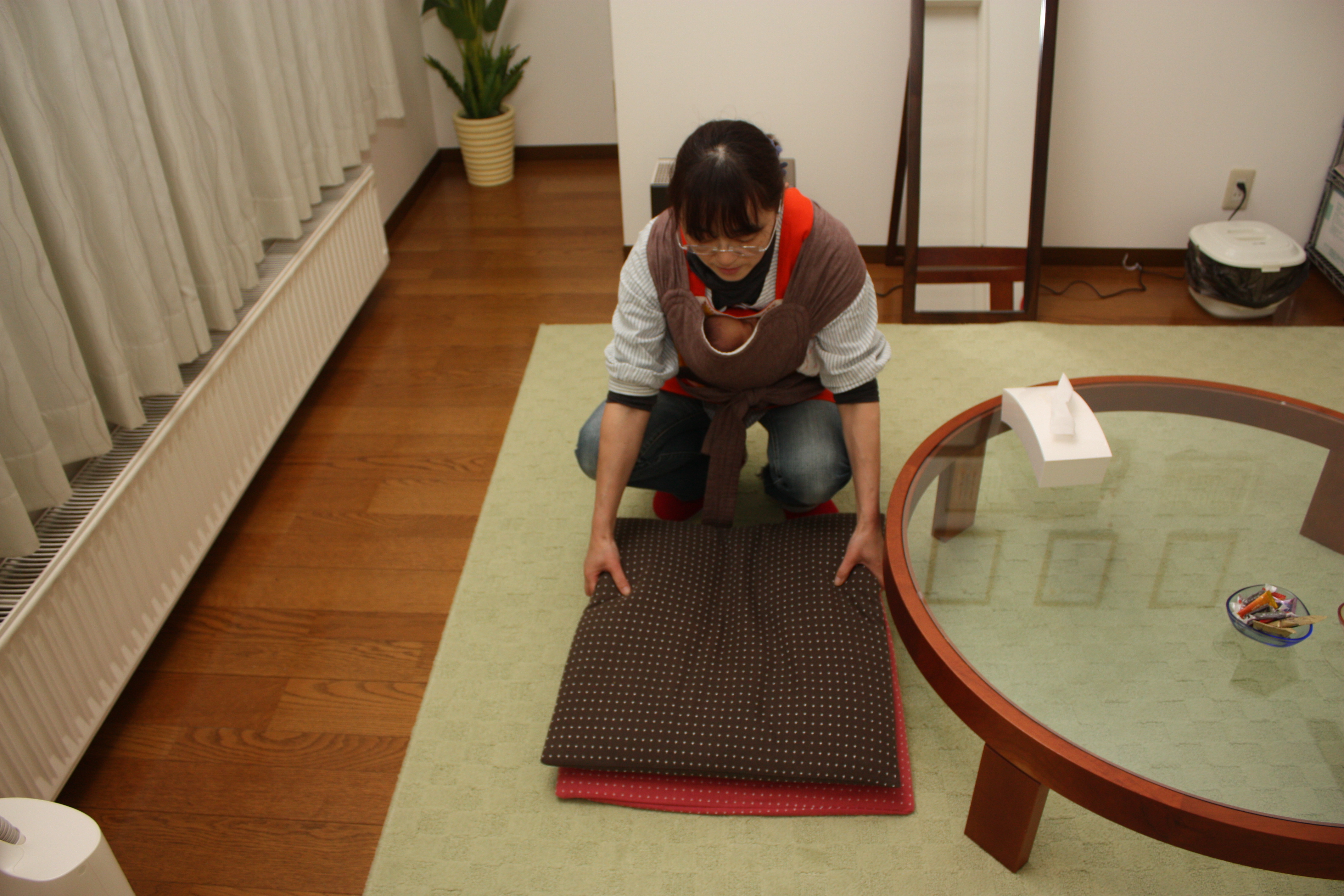 へこおび同様両手が使えるのはもちろん、赤ちゃんはしっかり身体にフィットしているので、多少かがんでも転落の心配はありません(*^^)v