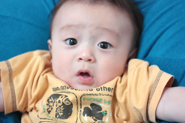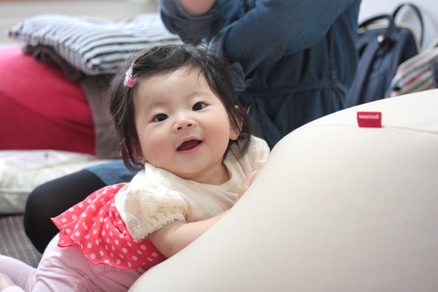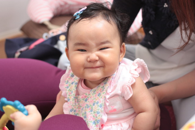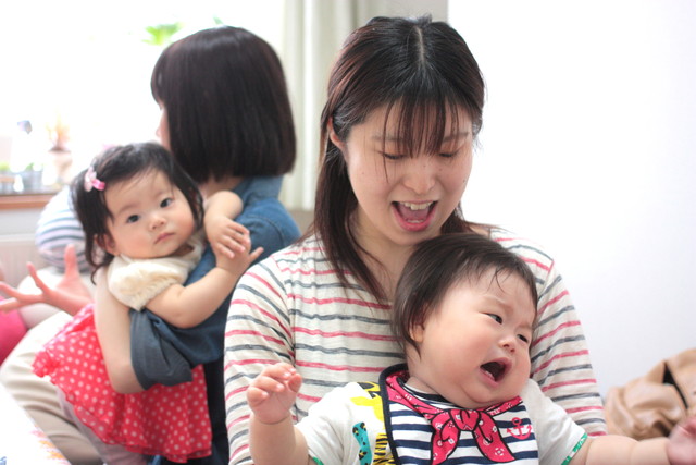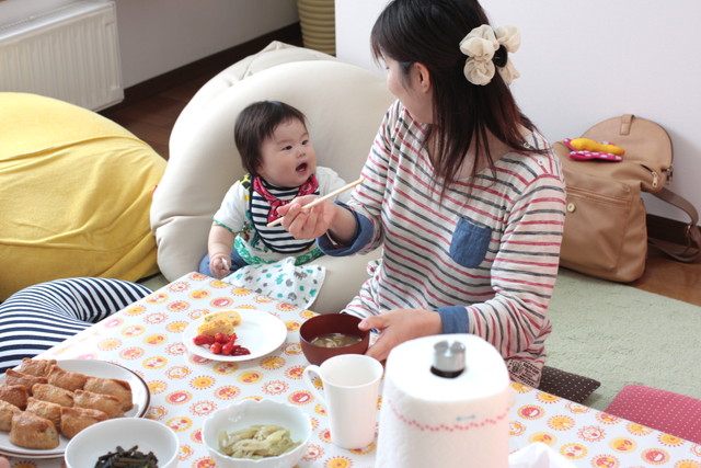 離乳食が始まっているせいか、赤ちゃん達はママが食事している所に興味があるみたいですね。