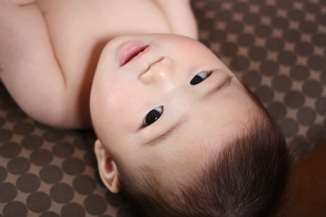 はるくんはママに話かけて、かなちゃんはじーっとみつめてました。