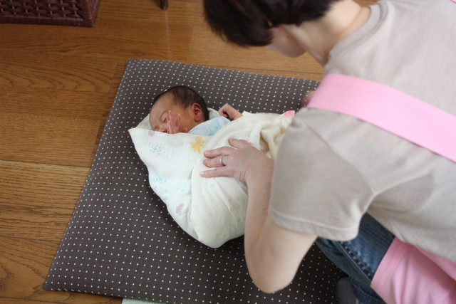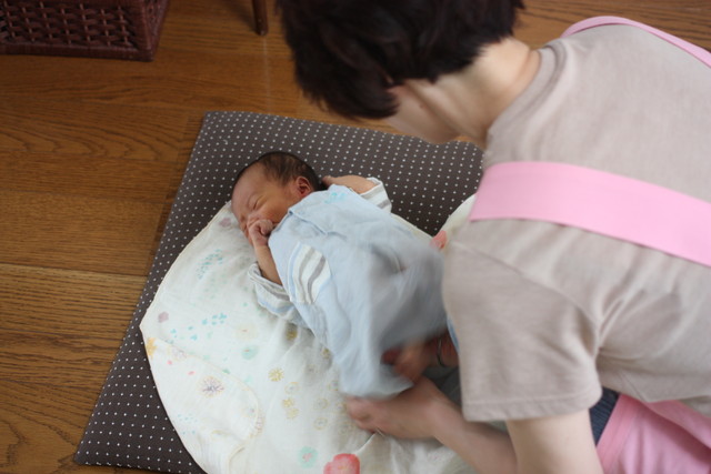 特に気にもかけて居なかったのでなーんにも考えてなかったのですが、今回こーくんをちゃっちゃとくるんでいる姿を見ておぉ!すごい!と思ってしまいました。