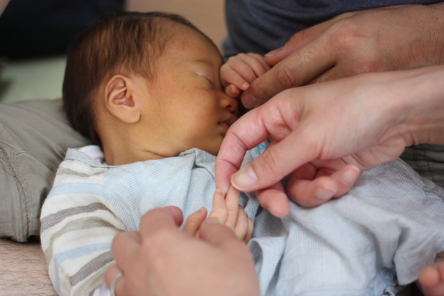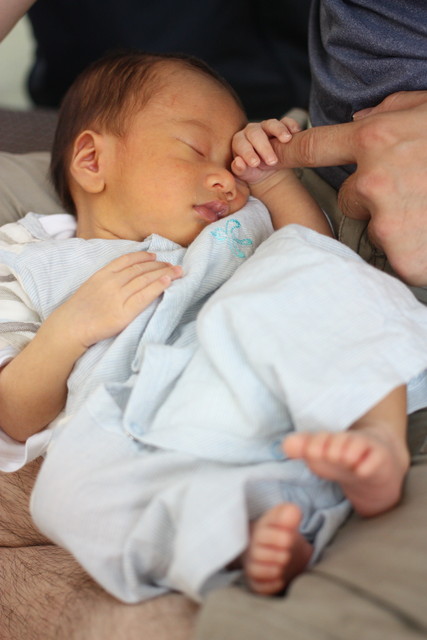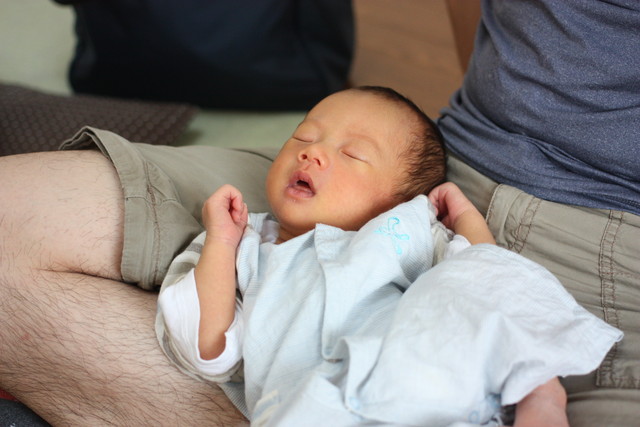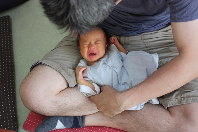 泣いちゃったけど、まだまだ声は小さいですね。これからどんどん体も声も大きくなるのが楽しみです。