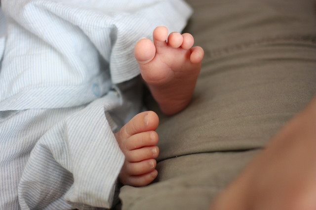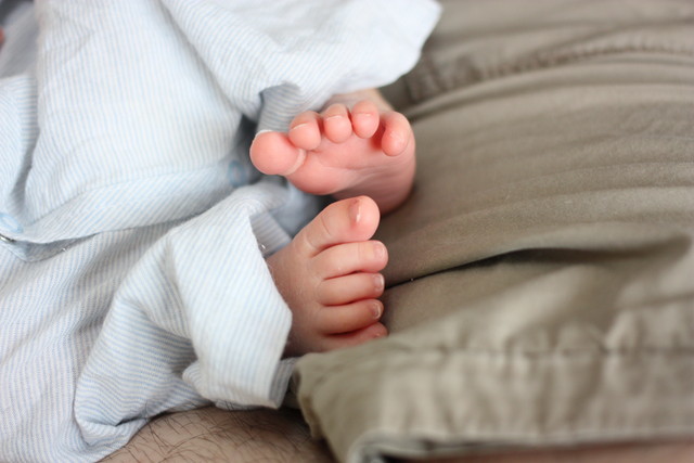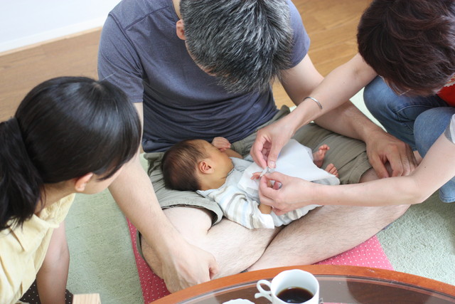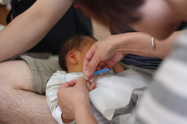 院長登場。「どれどれ?あー、赤ちゃんの爪って薄いですからねー。」