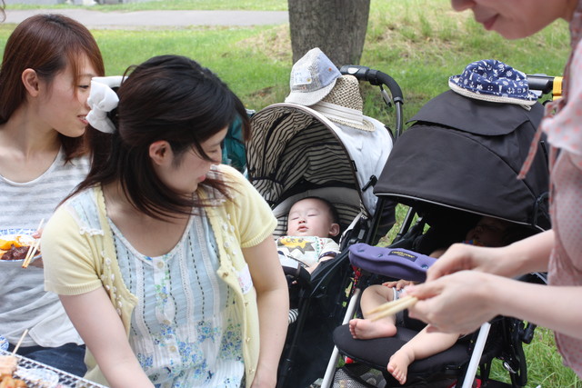 先週末は雨だったのにも関わらず、日曜はしっかり晴れたのでパパママベビちゃん達とお外で焼肉しちゃいました。