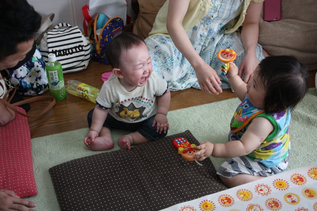 はやっちのラッパではるくんが遊んでいたので泣いちゃったみたいです。