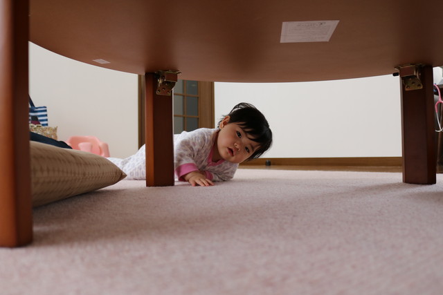 テーブルの下をのぞき込んだり