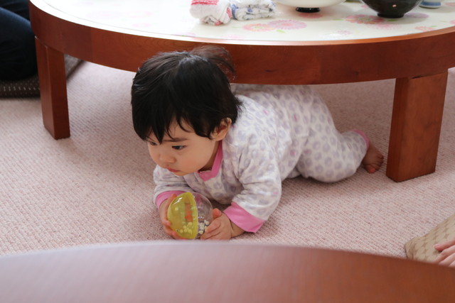 テーブルをトンネルのようにくぐってみたり・・。