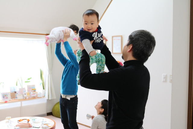 さんさんフリータイム(異月齢交流会)で他のパパママや赤ちゃん達と出会っているのです。