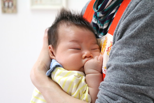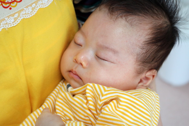 だっこ紐は立っている時にして、そのまま寝てもOK。