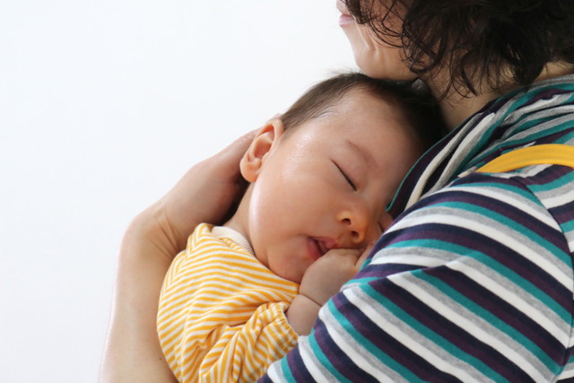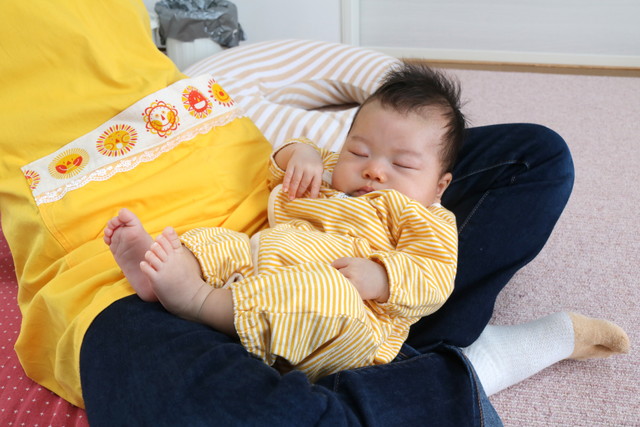 縦抱っこ~横向きだっこ~足の上と段階的に体を離しながら、睡眠を邪魔しない技(?)