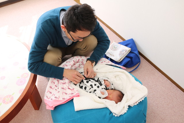おっぱいマッサージが終わってから、しんくんをパパから預りママのところへ。