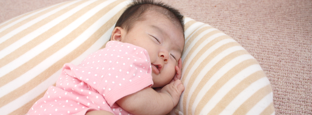 さんさん枕で気持ちよさそうに寝ている時の写真。大人になった時に同じポーズで写真撮りたい。