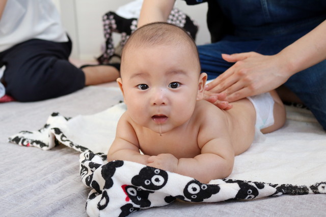 ママのマッサージ気持ち良いから、思わずよだれが・・・(^▽^)