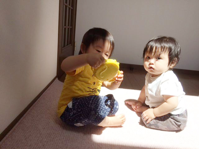 えいくん(写真左)とはるくん(写真右)は、えいくんのママが作ってくれたオモチャで遊んだり・・