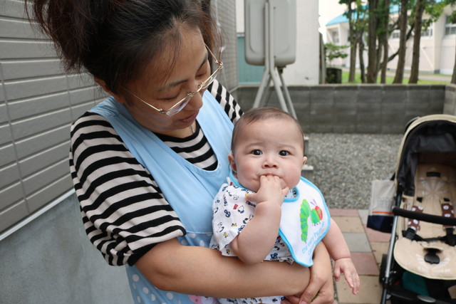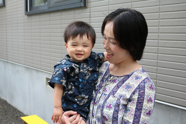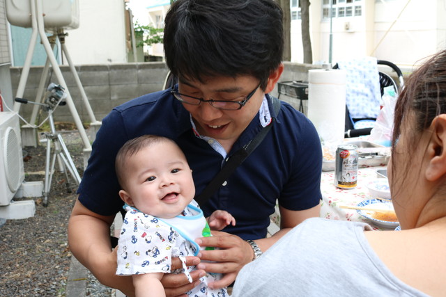お昼寝から目覚めておむつを替えてもらって、いよいよ夏祭りに合流です!(^^)!