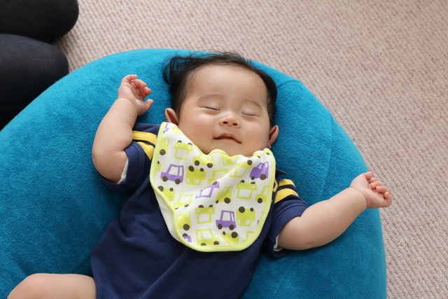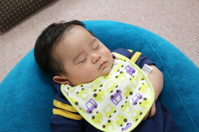 来院早々にママのおっぱいを飲んでお昼寝中のショーくん♪
