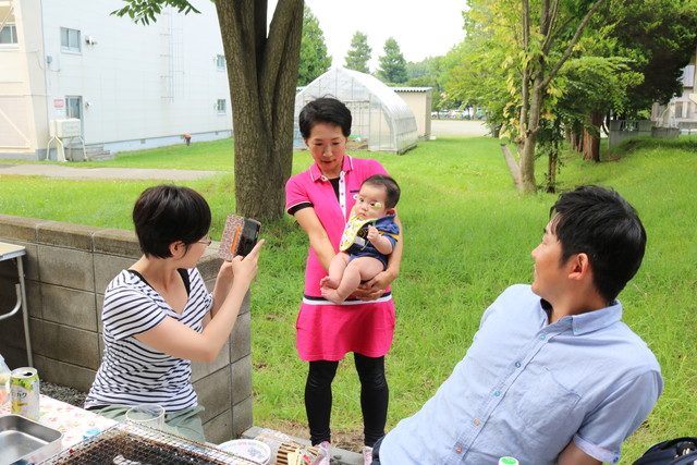 ママたちがお外で焼き肉の間は、とんちゃんが看ていてくれました(^^)