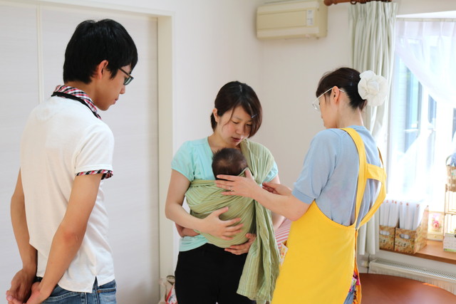 スリングの外し方(赤ちゃんのおろし方)も練習。