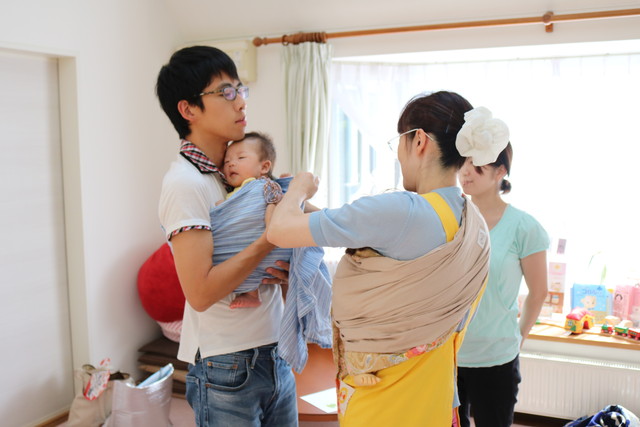 はっくんが大好きなパパは、お持ちになったスリングでもやってみる!と復習もしました。