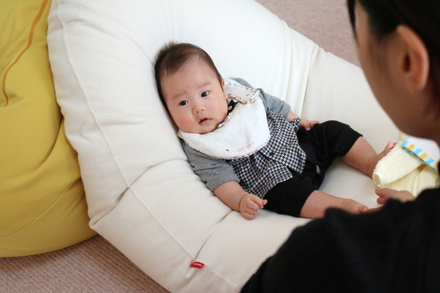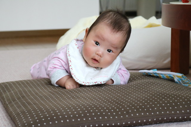 うつ伏せは嫌がるのであまり長くしてません・・とおっしゃるママ。