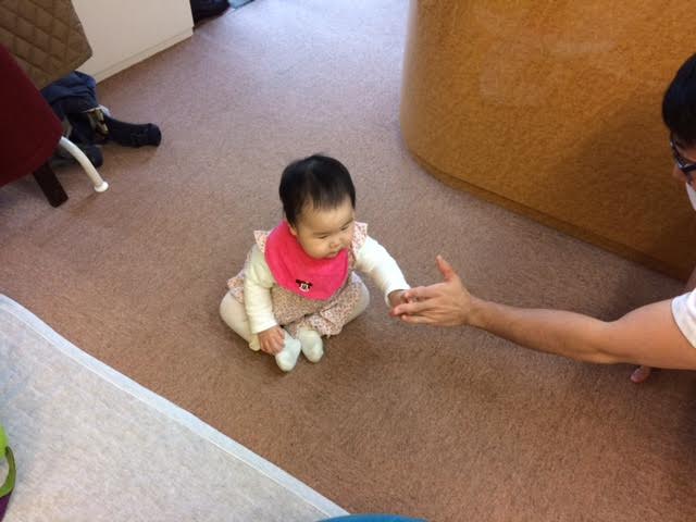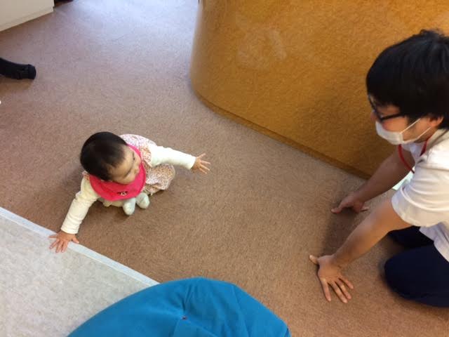 最初は岡崎先生と遊んでご機嫌だったのですが、ほどなく泣き出しママの元へ・・。