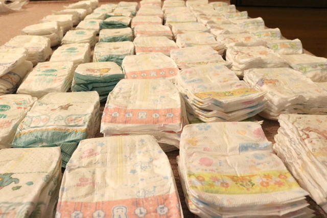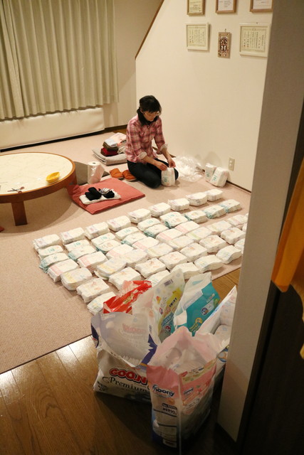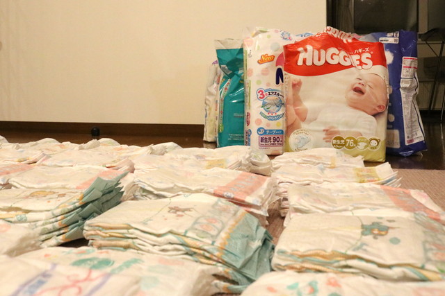 あちこちのメーカーから販売されているおむつを組み合わせてパックにしてました。