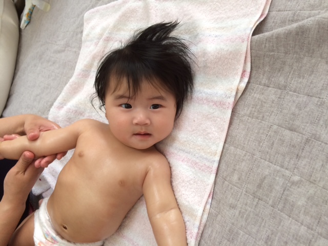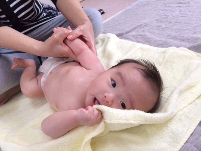 毎週木曜日恒例のベビーマッサージ教室。