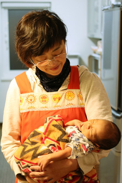 自分が抱っこしてると両手がふさがって撮れないので、ママに協力してもらいました(笑