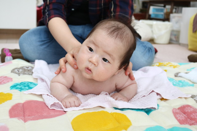 1ヶ月の間に、しっかり頚も持ち上げられるようになってました(^^)v