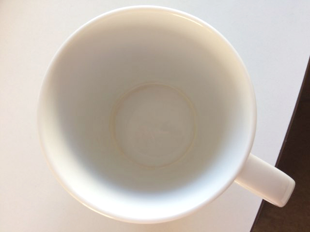 こちらのマグカップに使用済みの消毒液を注ぎ、1時間経過後…。