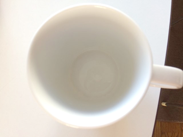 さて、先日哺乳瓶の消毒液を交換するときに、マグカップに注いだところ・・。
