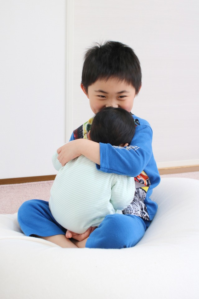 新生児を見て、お兄ちゃんお姉ちゃんの気分だったのでしょうか?