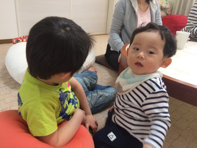 今日から産後ケアでお泊り中のあさくんのママとお兄ちゃんのごうくんも一緒に参加してくれました(^^)