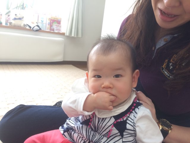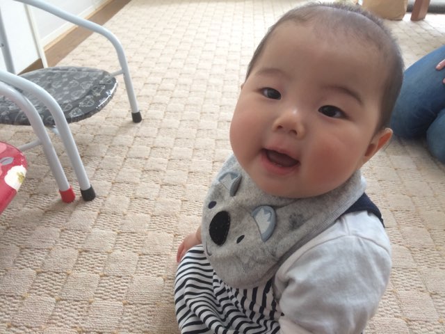 幸くん♪お座りも安定感が出てきて、離乳食もモリモリ食べてます(^^)