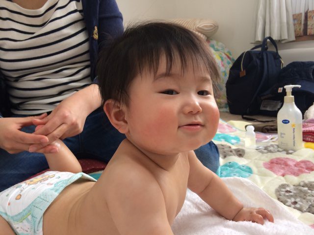 毎週木曜日恒例のベビーマッサージ教室。