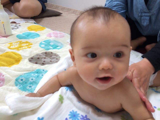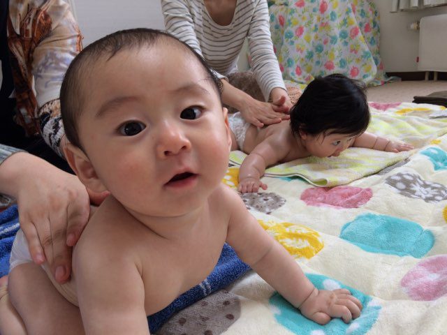 今回の参加メンバーは、5-6ヶ月の月齢も近いうつぶせも楽勝なお友だちばかり。