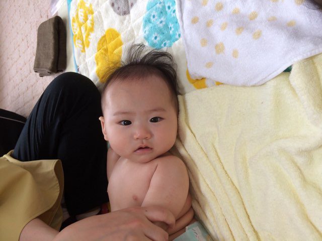 今回は、なみちゃんが“初寝返り”をしました!(^^)!