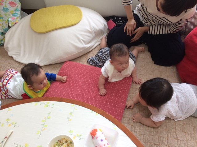 唯一まだずりばいできないアッキーはやや取り残され感がありますが、みんな自由で楽しそうです(^◇^)