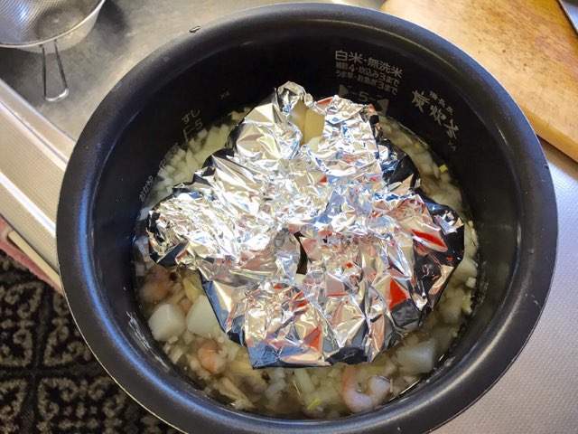 材料を炊飯器に入れて入れて、スィッチをON。
