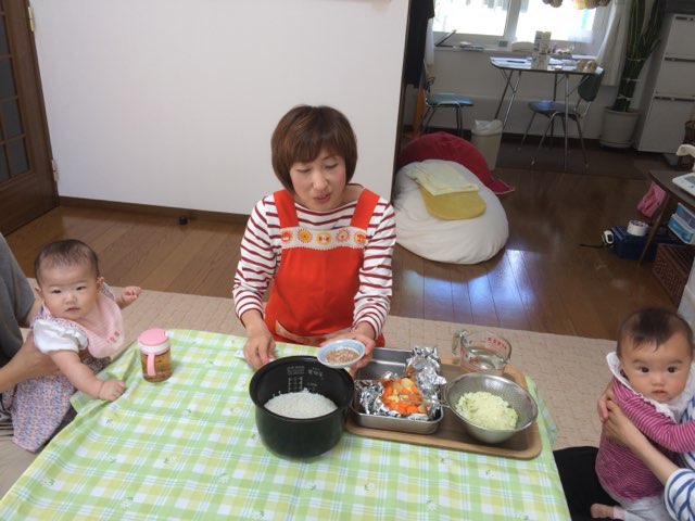 他にもさとちゃんに離乳食の相談をしたり、みんなでお話をしている間にご飯が炊きあがり!(^^)!