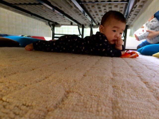 狭いところで好きで、ずっとテーブルの下に隠れていたゆ~くん♪