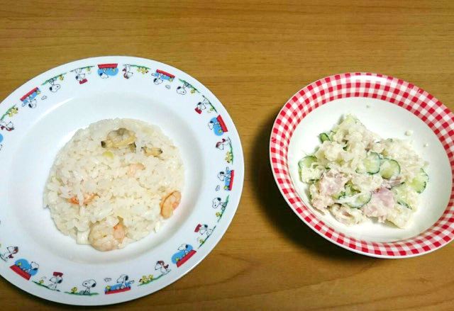 ピラフとポテサラとかぼちゃサラダの軽食を食べながら、ママたちのお話は続いて…