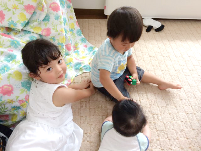 ママ同士が幼なじみで、3人も一緒に遊ぶことが多いみたい。