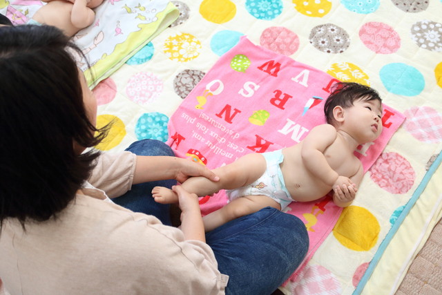 毎週木曜に恒例のベビーマッサージ教室。