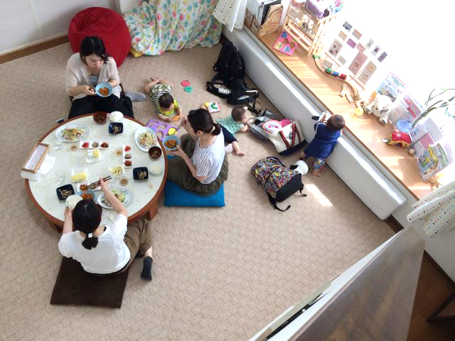 数少ないさんさん助産院のおもちゃ(中身より容器が人気だったりして笑)で仲良く遊んでいる間に、ママたちもゆっくりとお食事とおしゃべりを楽しんでくれたようです!(^^)!