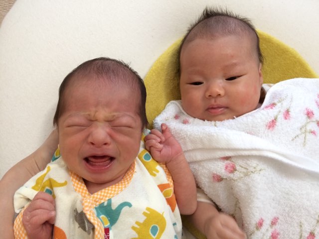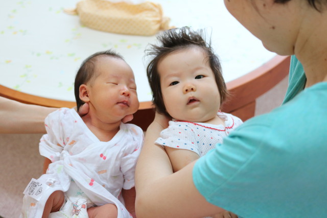産院から直行でご利用のう~たん(写真左)♡と開始日の翌日に4ヵ月になるかっちゃん(写真右)♡