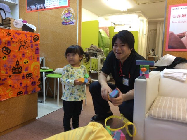 ママの身体の治療は整骨院の先生たちが担当し、その間ママを待っているお子さまのお世話をわたしやスタッフのジュンコさん・いくえさんが担当します。