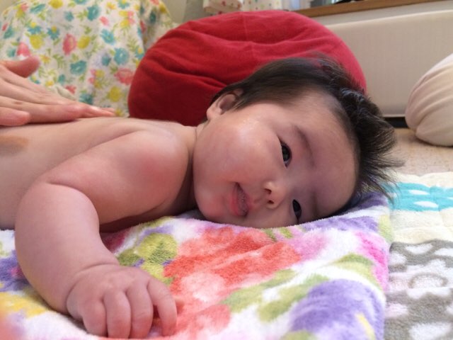 お風呂上がりの保湿剤もマッサージしながらなら泣かずにできちゃうかも?です(*^^)v