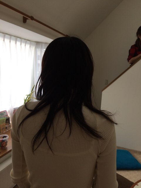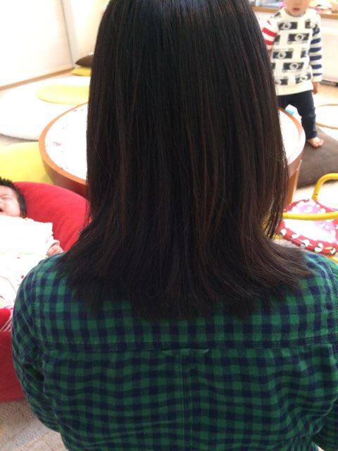 ママの髪は産後忙しくて美容室に行けなかったので伸び放題になってたんです。